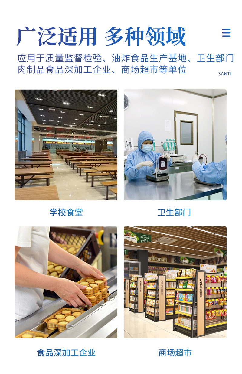 該過丙二醛檢測儀為集成化食品安全快速檢測分析設(shè)備,目前已于市場監(jiān)管局、食品深加工企業(yè)、學(xué)校食堂、煉油廠、配送中心、商場超市等單位廣泛使用